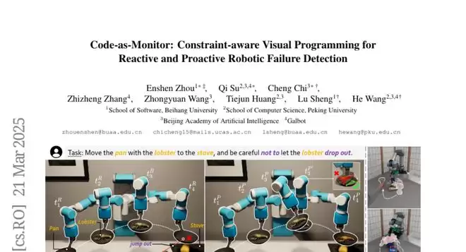 当你在厨房做饭时,如果看到锅子开始倾斜,你会立刻调整;如果食物掉了,你会马上反应过来重新处理。这种在问题发生前预防和发生后快速应对的能力,正是北京大学、北京智源人工智能研究院等机构联合发表的最新研究想要赋予机器人的核心技能。这项名为"Code-as-Monitor"的研究成果于2024年12月发表,论文编号为arXiv:2412.04455v3,代表了机器人故障检测领域的一次重要突破。