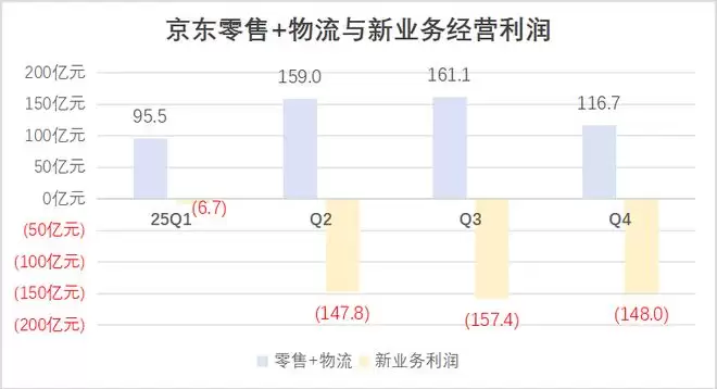 在财报业绩会上,京东集团CFO单甦提到,京东外卖四季度亏损环比收窄近20%,在规模健康增长的同时,经营效率改善与收入增长推动亏损率大幅收窄。可是,四季度148.01亿元的经营利润亏损与-150.1%的利润率,都表明京东外卖还需要做更多努力,证明其业务持续性。