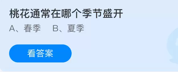 桃花一般什么时候开得最盛?支付宝小鸡课堂今天开课啦!每天花一分钟参与答题,赚点饲料喂养小鸡,还能顺便做公益献爱心,轻松有趣又有意义!2026年3月7日蚂蚁庄园小课堂的正确答案是【春季】,桃花的花期通常在春天,具体时间是公历3月到4月,也就是农历三月前后,所以桃花也被人们称为“阳春花”。