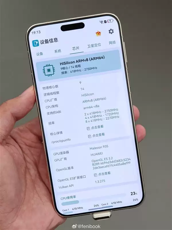 在具体架构方面,麒麟9030 Pro采用了先进的1+4+4九核心设计。其中大核主频高达2.75GHz,中核为2.27GHz,并辅以1.72GHz的高效能小核,图形处理器则采用了Maleoon935。