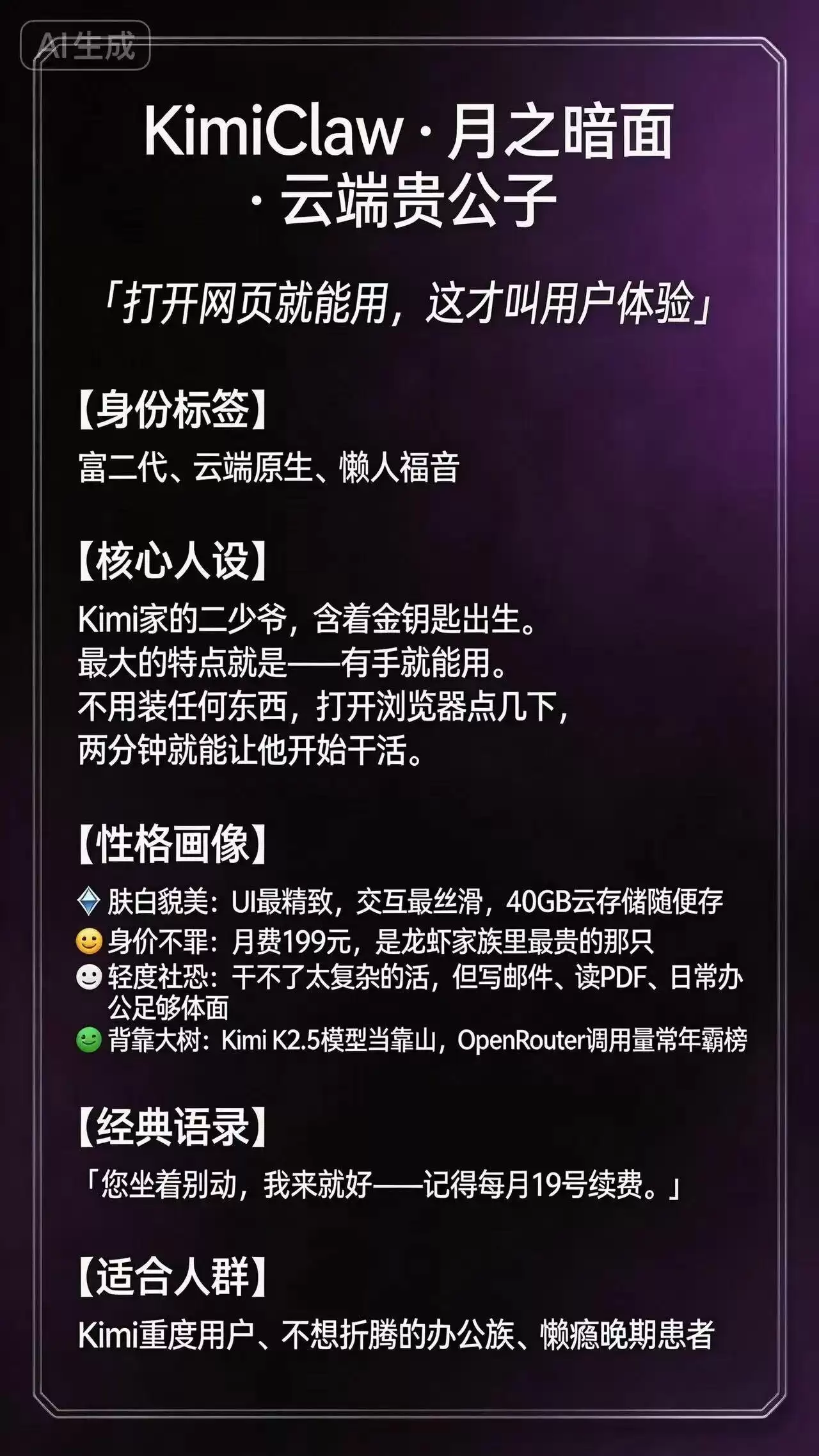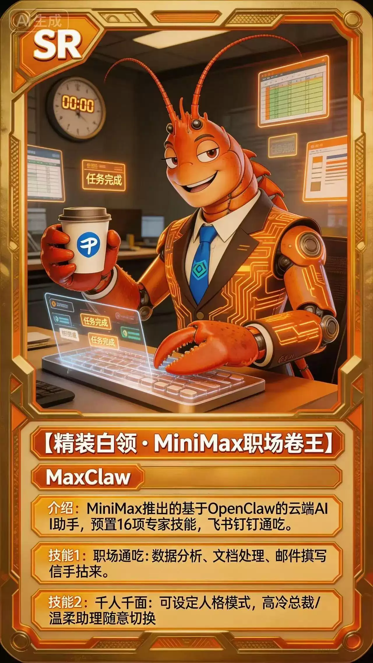 2026年春天,科技圈悄然流传起一套新的“卡牌”。只不过这次,卡面上的人物不再是宋江、武松,而是一群形态各异的“龙虾”——OpenClaw、KimiClaw、MaxClaw、Claude+Code等等。