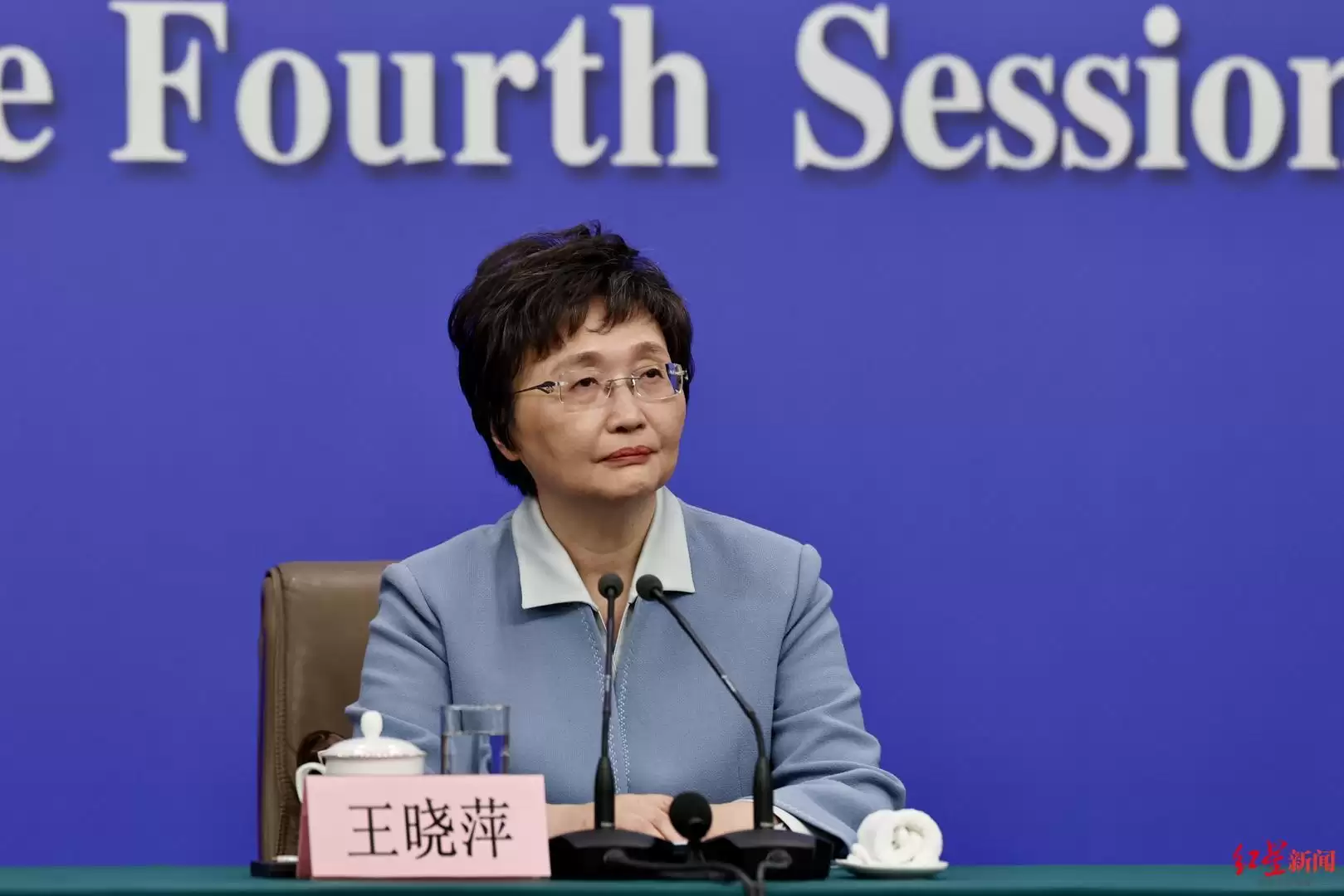 ▲人力资源社会保障部部长王晓萍 红星新闻记者 张炎良 摄