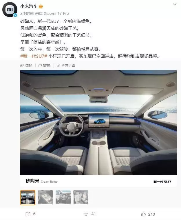 小米SU7正式上市:砂陶米内饰吸睛,动力续航双升级