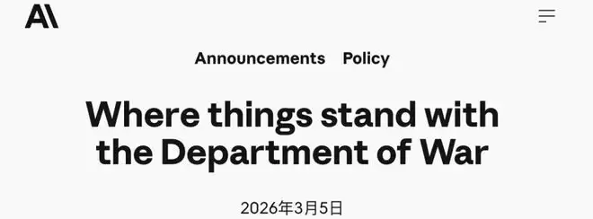 是在特朗普总统于Truth Social发文宣布Anthropic将被移出所有联邦系统、国防部长在X上发文宣布供应链风险认定,以及五角大楼与OpenAI达成协议的消息公布后几小时内写成的。