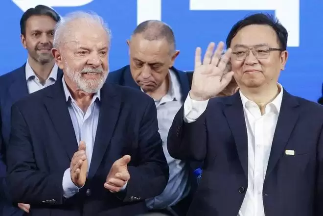 王传福与巴西总统卢拉出席比亚迪巴西工厂落成典礼;图源:视觉中国