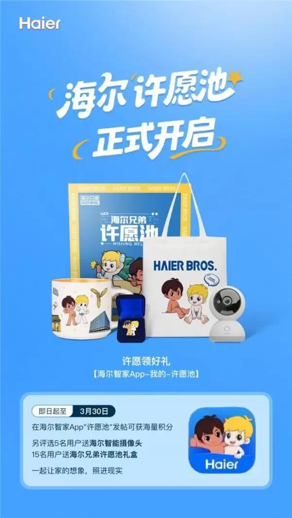 为感谢每一份真诚的分享,许愿池上线同步开启了新年互动活动。即日起至3月30日,带话题#许愿池#,在海尔智家App“许愿池”社区发布帖子留言,即有机会获得积分奖励。如果留言内容足够真诚真实、富有故事性、创意十足,或能精准洞察生活需求,还将有机会赢取惊喜实物好礼。