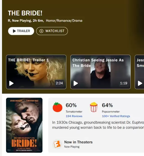 而评价方面,其实也很不乐观。烂番茄现在只有60%的新鲜度,同样说明影片是充满争议与两极化的。