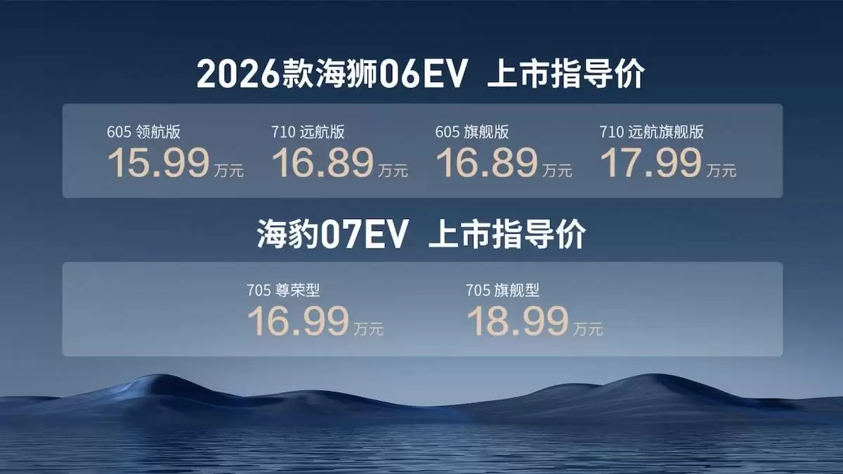 2026款海狮06EV以“全场景自由闪充”为核心卖点,常温下电池电量从10%充至97%仅需9分钟,即便在零下30度的极端环境下,从20%充至97%也仅需11分钟。新车续航里程提升至710公里,配合智能驾驶辅助系统天神之眼5.0,支持城市领航、高速智驾及全场景泊车功能。舒适性配置方面,新增前排座椅记忆、按摩、腰撑及副驾腿托,搭配云辇-C智能阻尼车身控制系统与路面预瞄功能,确保行驶平稳性。安全性能上,TBC高速爆胎稳行系统可在140km/h时速下将横向偏移控制在0.75米内,提供双重保障。该车型最新指导价为15.99万至17.99万元,购车可享焕新、无忧、闪充及智联四重礼遇。