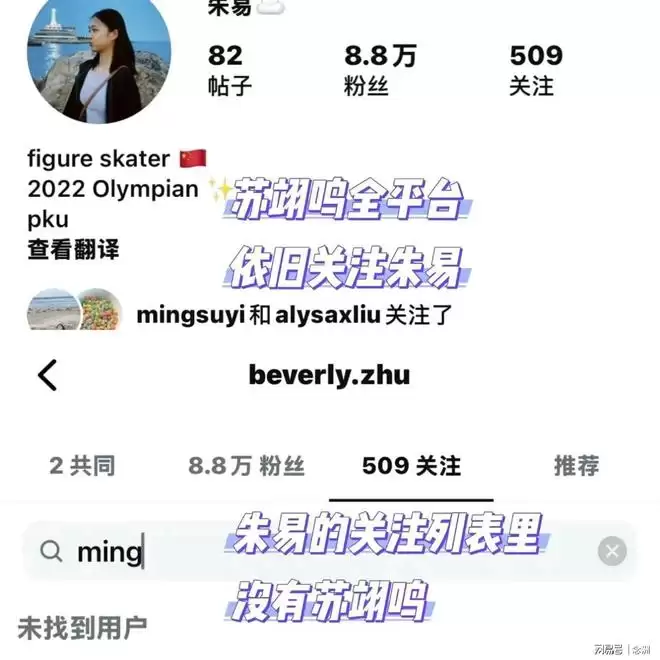 然而今天凌晨,有网友爆料称朱易在社交平台ins上取关了苏翊鸣。事实也的确如此,苏翊鸣依然关注着朱易,但朱易的关注列表里已经没有了苏翊鸣的名字。