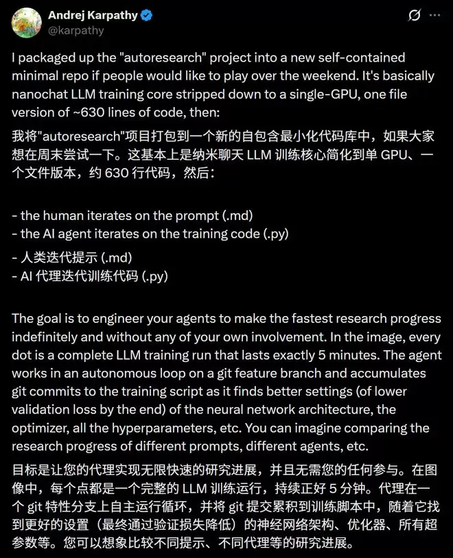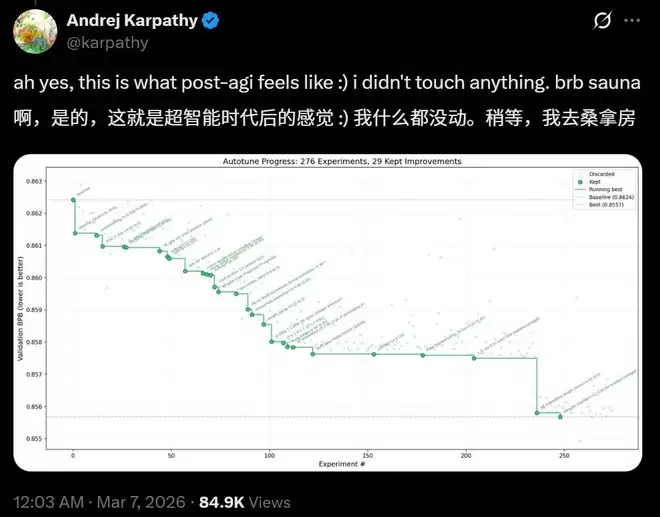 而autoresearch的开源,让这件事的门槛降到了令人瞠目的程度。