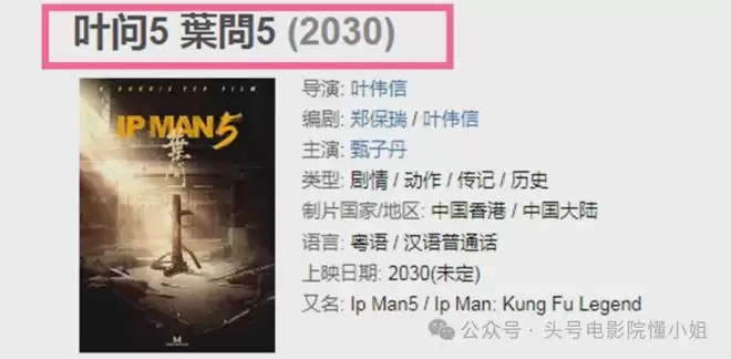 现在,豆瓣《叶问5》的主页上,上映时间已经“标注”为2030年了——意味着暂时遥遥无期。