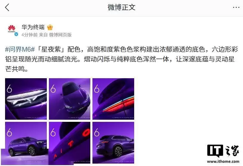 鸿蒙智行问界M6星空紫官图亮相,多款配色曝光