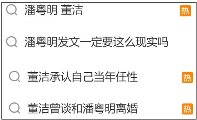 针对董洁,网友的吐槽就更多了,每一次潘粤明语焉不详,后续总是有董洁身影出现,紧跟着一起上热搜。