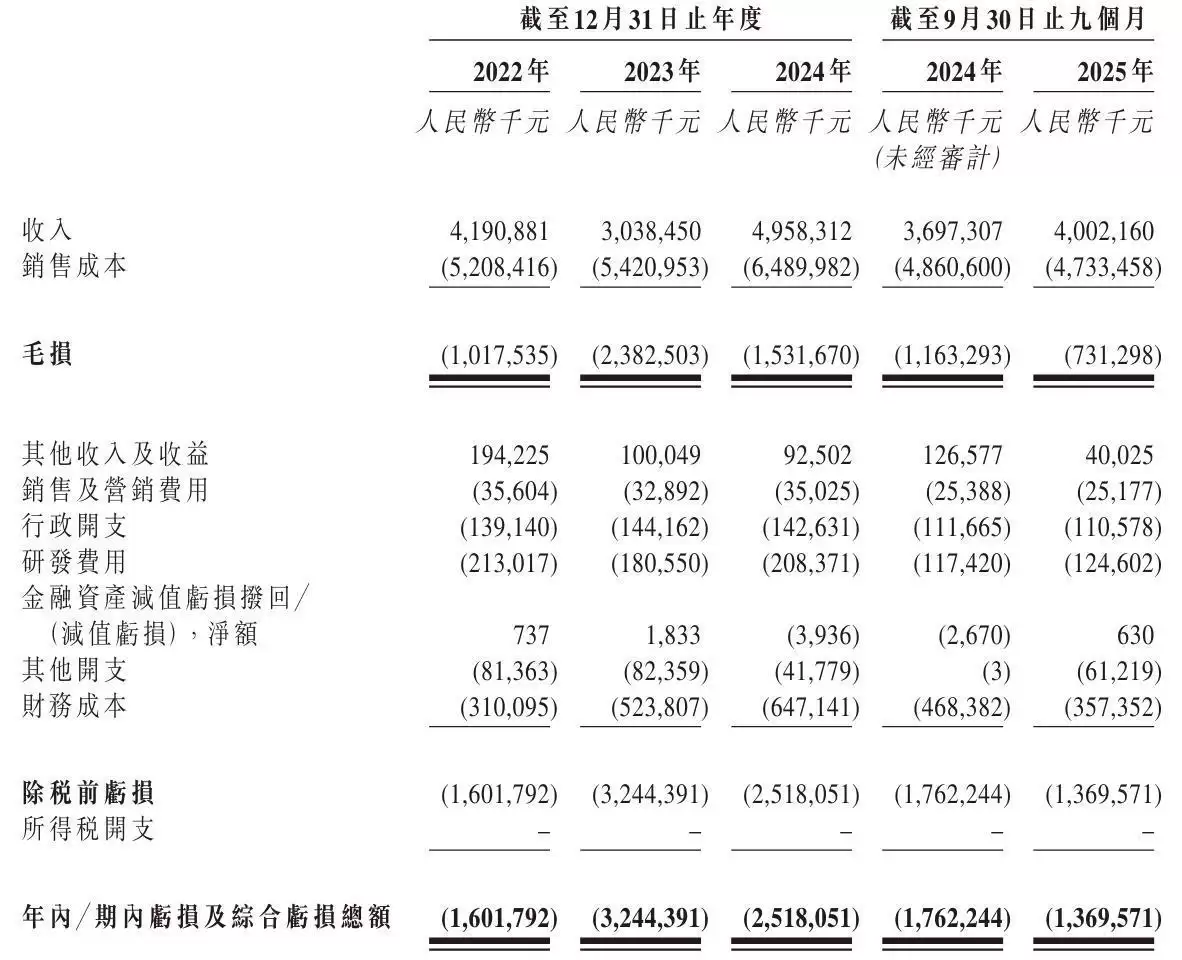 据其招股书披露,和辉光电2022年、2023年及2024年的营业收入分别为41.91亿元、30.39亿元和49.58亿元;同期,公司的毛亏损额分别为10.18亿元、23.83亿元与15.32亿元;各年度净亏损额分别为16亿元、32.44亿元及25.18亿元。