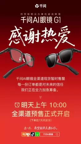 AI眼镜千问10点补货攻略,明日售罄前速抢