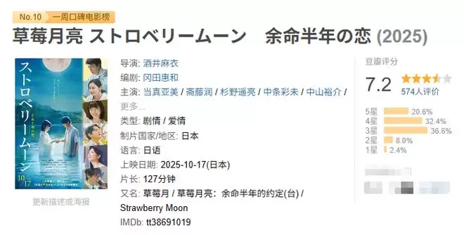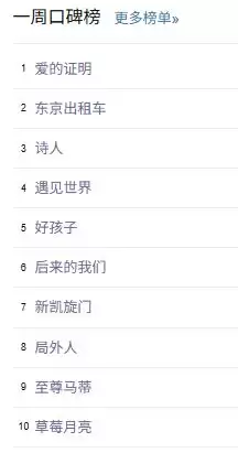 最后,还是例行附上一周豆瓣口碑榜的完整榜单: