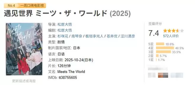 同时,一周豆瓣口碑榜也是可以了解下的。我们一起来看,这一周,又有哪些新的影片上榜吧。
