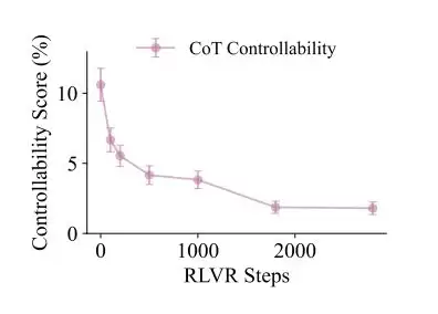 RL训练步数增加,模型解题能力持续提升,但CoT controllability却断崖式下跌