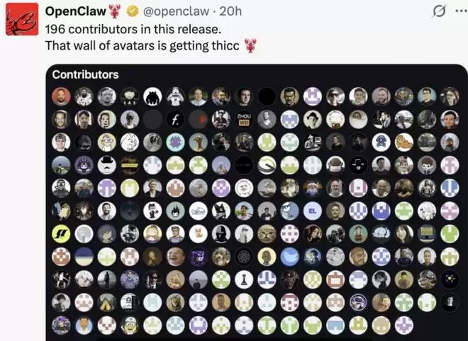 而这些只是此次更新的部分内容,更多详细信息,大家可以去 GitHub 上获取。正如 OpenClaw 在更新贴文中所言,「此次发布的背后包含了 196 位贡献者」,涉及多方面的更新。