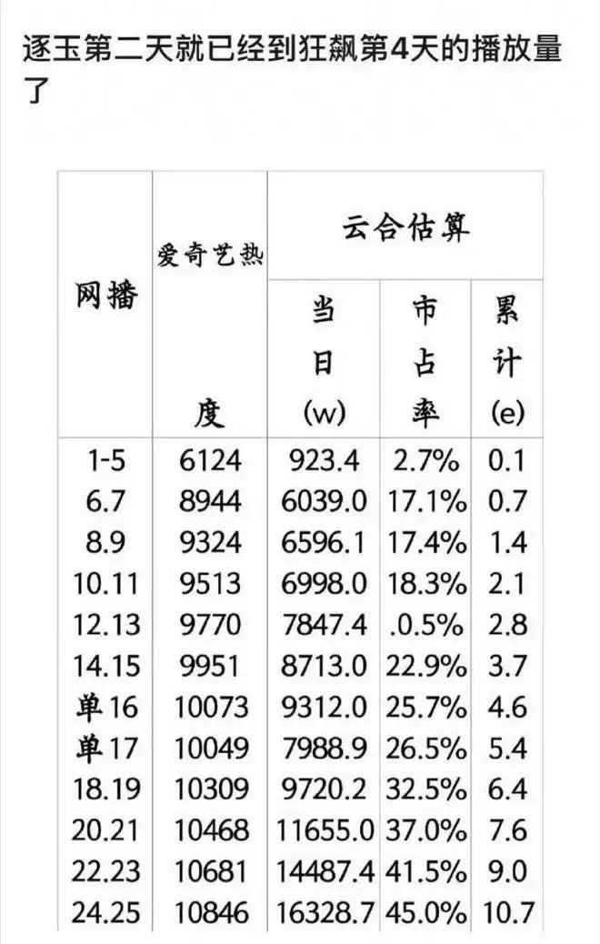 没太关注这部剧,数据的争议大概是始于《逐玉》营销第二天的播放量已经超过《狂飙》开播四天的播放量。