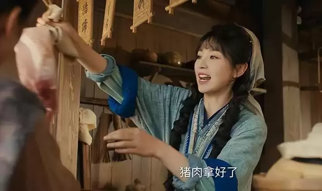 顶着一张“甜妹”的脸,一双大眼睛格外灵动,但扛着几十斤猪肉大气不喘,拎着杀猪刀冷脸放狠话的场面,反差感相当强。