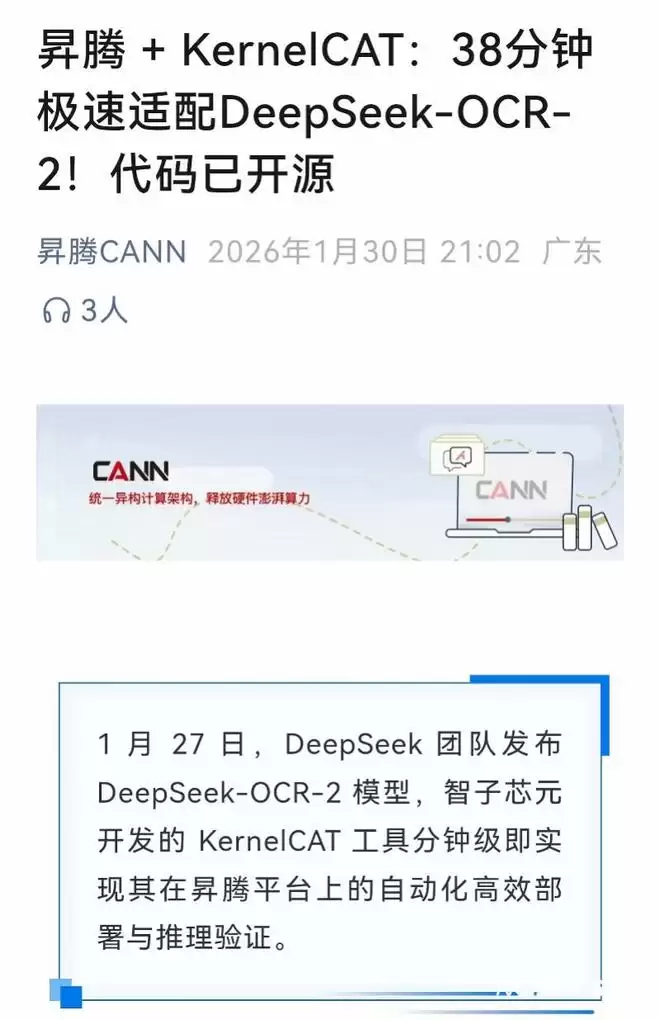 把大象装进冰箱需要三步,但把顶级的 DeepSeek-OCR-2 模型“完美迁移”到国产华为昇腾(CANN)平台,曾被视为一场“噩梦”。