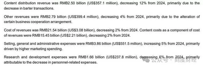 从营收来看,全年总营收272.9亿元同比下滑7%,核心业务几乎全线下滑,仅靠四季度内容分发的短期爆发勉强撑住场面。四季度内容分发收入7.9亿元同比暴涨94%,看似亮眼,实则只是现金交易增加带来的一次性红利,其全年收入25亿元仍同比下滑12%。