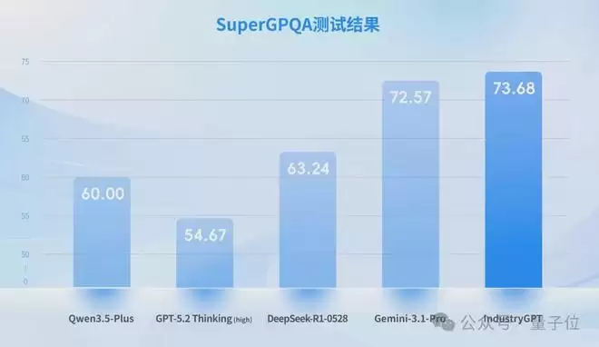 为了建立客观可比的评测基准,思谋选取权威开源中文数据集SuperGPQA中与工业相关的题目子集,对IndustryGPT与GPT-5.2 Thinking (high) 、Gemini-3.1-Pro等国际顶尖通用大模型进行了横向测试。