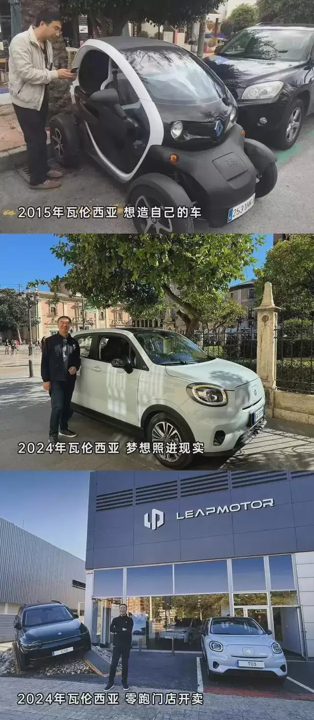 2014 年,朱江明在西班牙看到一辆雷诺的电动车,萌生造车想法。2024 年,他在朋友圈分享了这张照片。