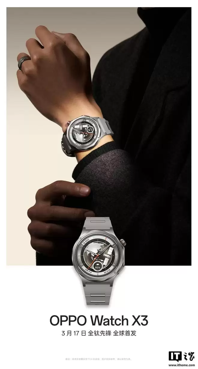 此外,OPPO在3月6日还发布了Watch X3的预热视频。画面显示,新手表将支持步数记录、海拔高度显示等功能,预计定位高端市场,主打户外运动等使用场景。另有消息确认,OPPO Watch X3 Mini以及OPPO Enco Clip2等新品也即将亮相。