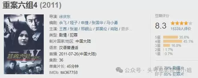 在豆瓣,2001年首播的《重案六组》第一部至今保持着8.9分的高分,好于95%的犯罪片。