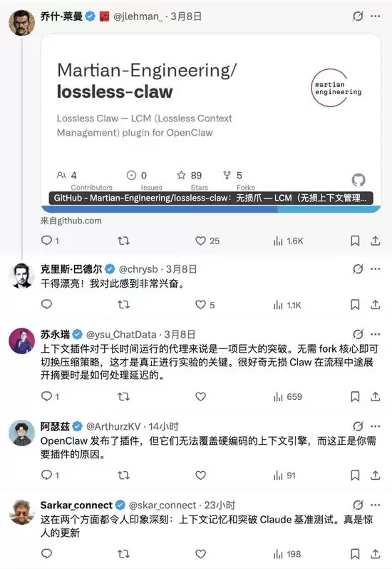 在社交媒体X上不少开发者惊呼这一更新意义重大。有用户甚至断言这一插件对于需要长时间运行的智能体来说是一项决定性的突破。