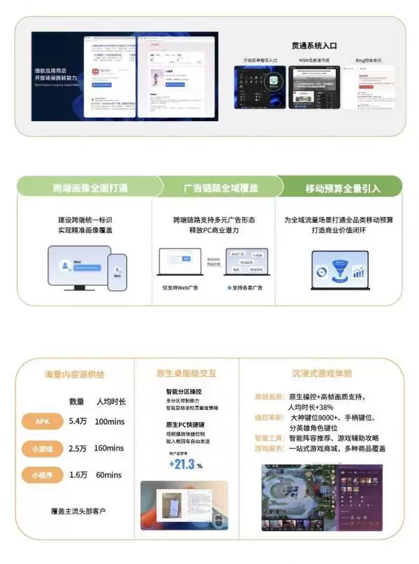 2025年3月,微软应用商店腾讯应用宝专区全面上线,实现中国区Windows 10/11系统的全面覆盖。这不仅是微软在国内首次向第三方开放系统级入口和资源组建,更意味着用户可以直接在PC上无缝运行安卓应用,无需模拟器,无需复杂设置,真正实现“一次开发,多端覆盖”。数据显示,该专区已覆盖1.4亿台设备,接入4万+移动应用,引擎安装成功率高达97%。与此同时,移动跨端引擎在 Windows 生态的深度落地,为微软中国开拓了全新的商业增长曲线。
