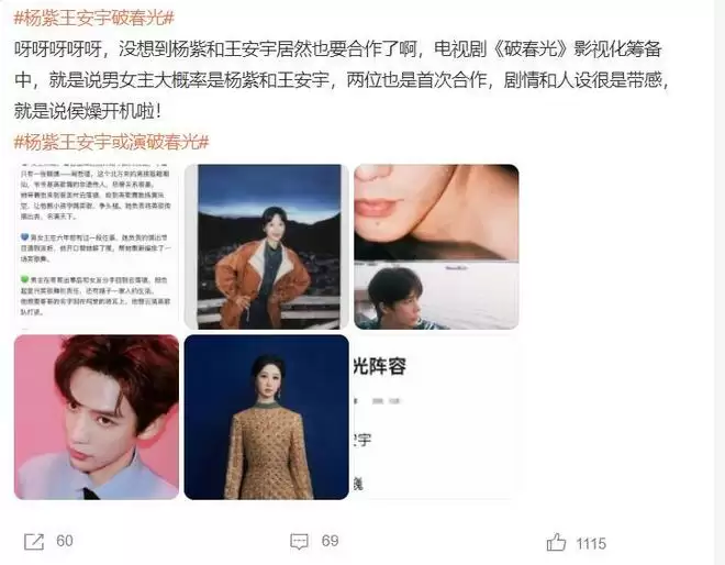 各位读者,看到网传杨紫搭档王安宇出演《破春光》的消息,你期待吗?我们还需等待最新官宣。