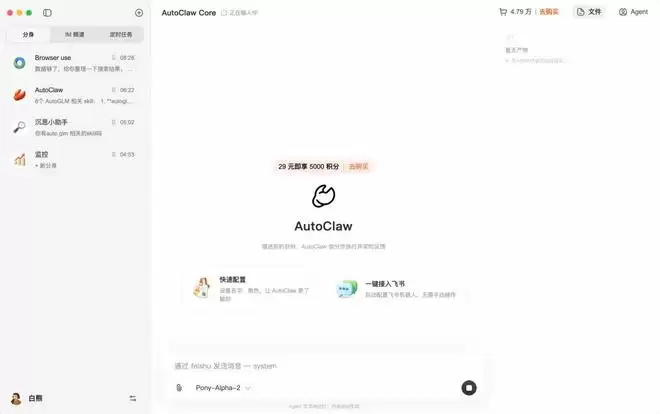 值得一提的是,AutoClaw内置了智谱专为OpenClaw场景优化的模型——Pony-Alpha-2,该模型在工具调用稳定性、任务推进效率及响应速度方面均有提升,高适配OpenClaw典型场景,预计晚点发布正式版。