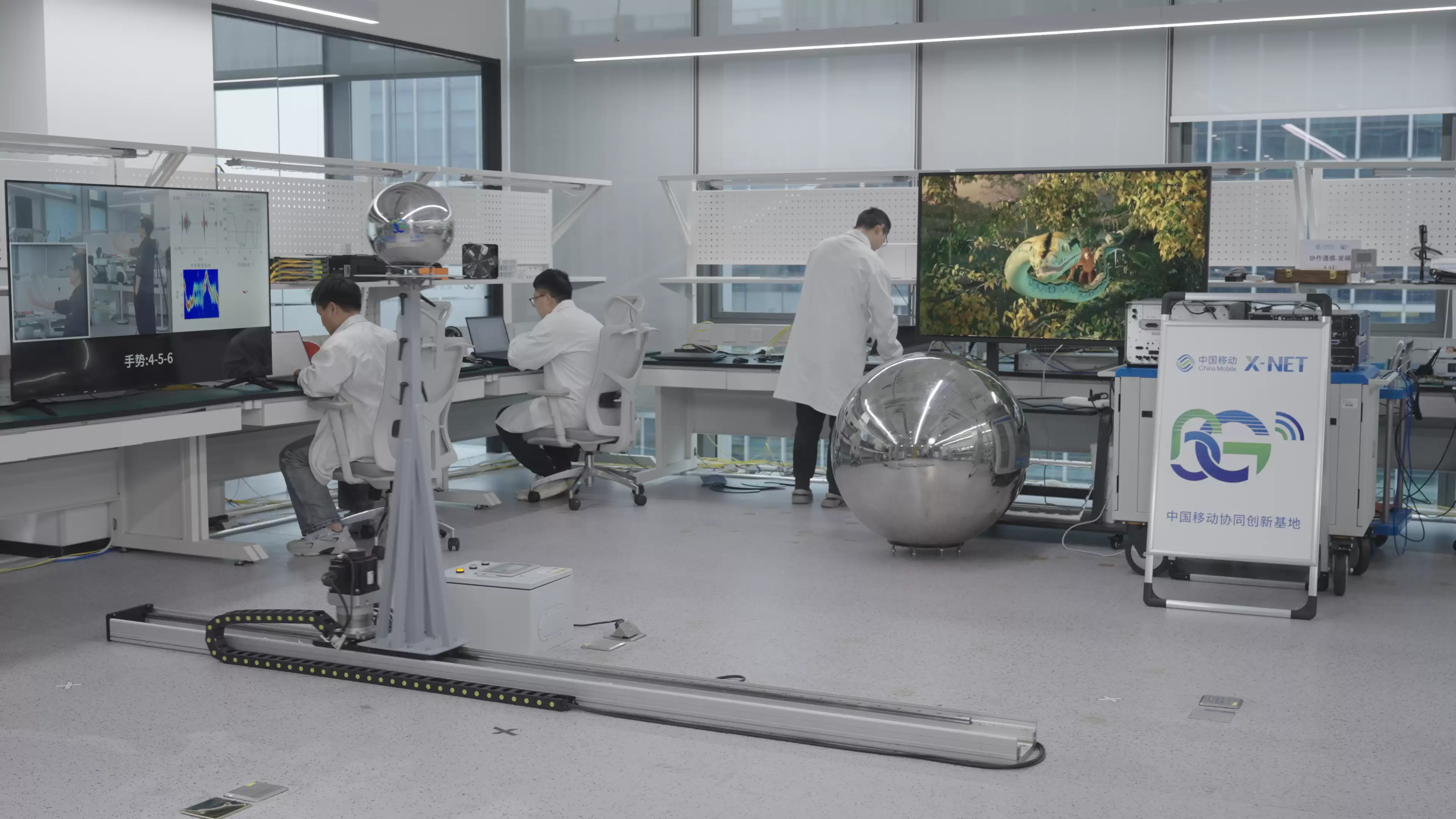 工作人员正在进行6G网络协作通感技术验证。