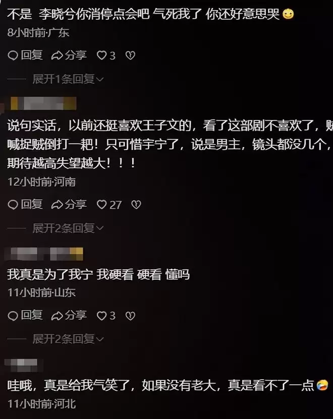 观众们也是感慨,王子文演得让人入不了戏,整部剧都是这样。