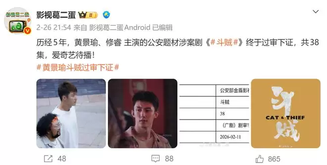 其实在当下创作环境中,作品只要能够过审,就是一种胜利了,期待该剧早日定档,与观众们尽快见面吧。