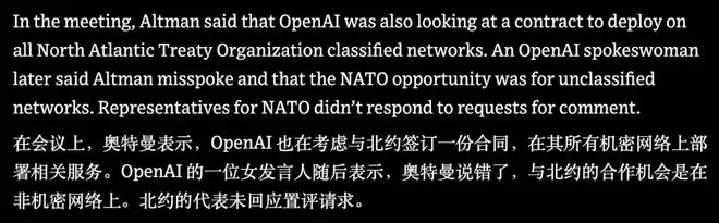 几天前,华尔街日报炸出猛料,称 OpenAI 正谋求将其技术接入北约系统。