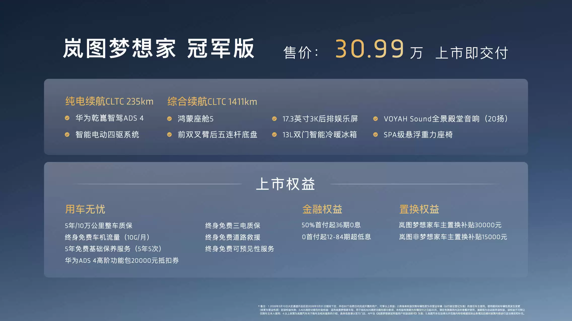 岚图梦想家冠军版上市,30.99万享华为智驾与豪车底盘