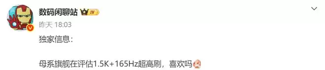 IT之家 3 月 28 日消息,博主 @数码闲聊站 今日爆料称,马上会有两台至尊版打擂台,都是天玑 9500,都是 8 开头百瓦大电池,都是 165Hz 超高刷直屏,在外围和增项体验上有差异,应该都