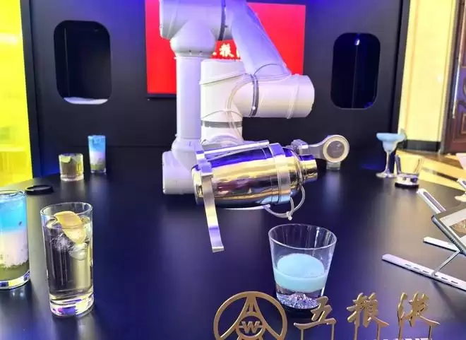 现场展示的调酒机器人。