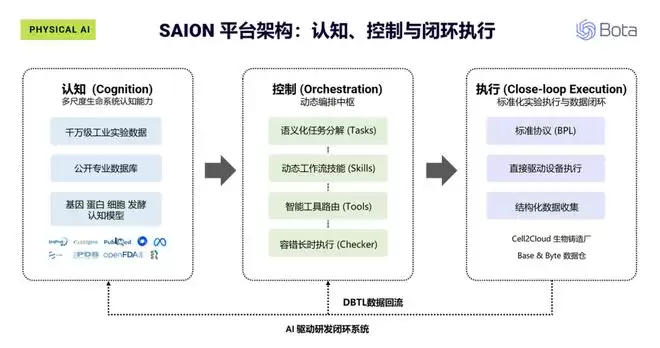 SAION AI 并非停留在虚拟设计的 AI 智能体或单一执行的实验自动化工具,而是一个包含认知、控制与闭环执行能力,能实现自主设计、直接参与并优化生物发现与生产工艺的 Physical AI 平台。