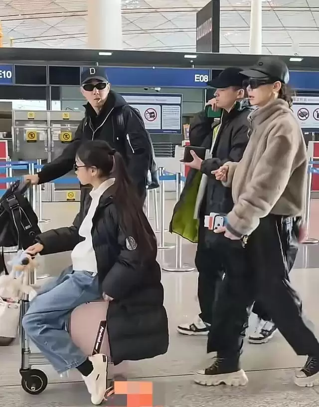 11岁的Lucky骑在了一只行李箱之上,当下明星家庭都对这样一种电动行李箱青睐有加,它不但能够用来装行李,还能够当作一辆小型电车供人骑行,进而使人的双腿得到解放。