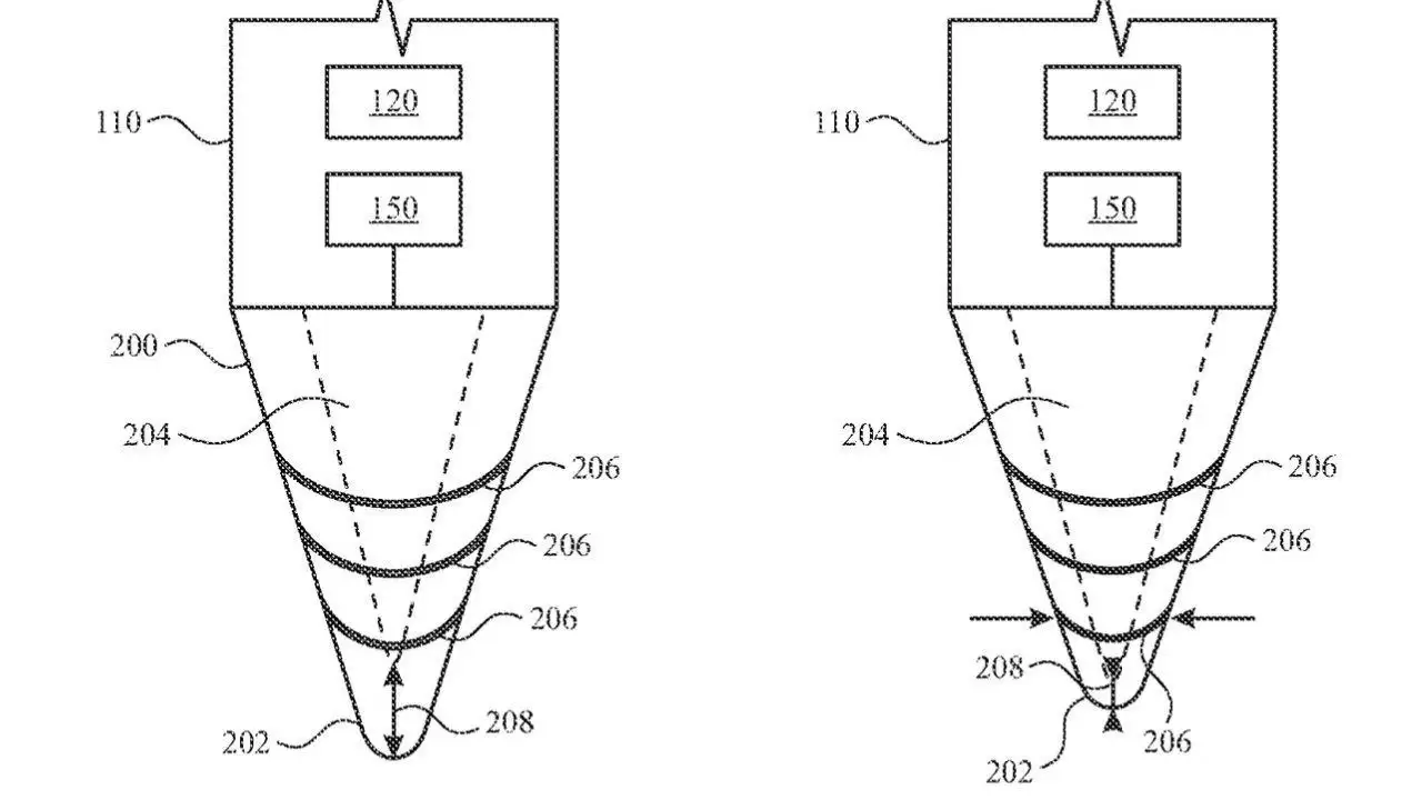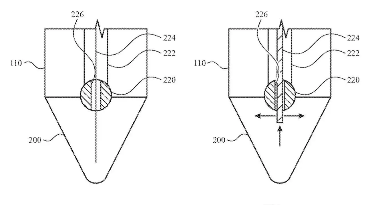 在外部形态方面,苹果在专利中明确表示,未来的笔尖不再局限于传统的固定圆锥体,而是能够根据当前任务动态改变其大小与形状。