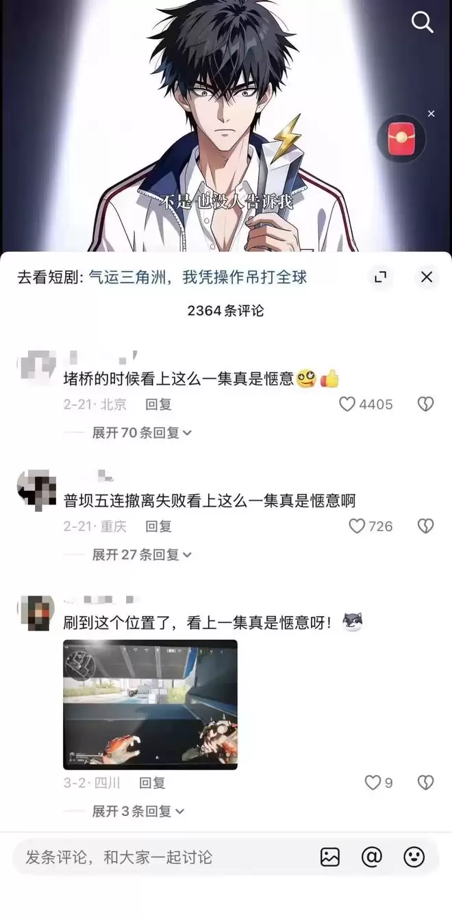 2026春节档黑马短剧《气运三角洲,我凭操作吊打全球》,上线29小时播放量破2亿,登顶DataEye漫剧热播榜。这个国运+游戏竞技题材短剧,主角在虚拟战场为国争光的高燃节奏,AI渲染的未来都市与竞技场景质感突出。