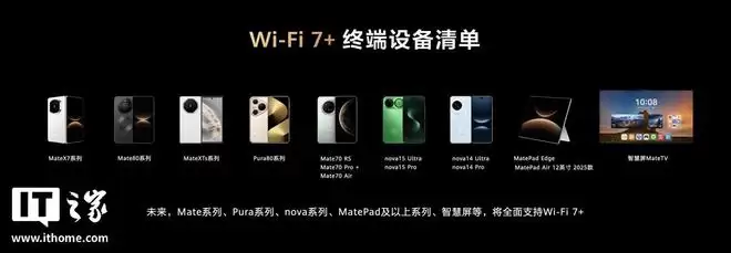 目前,华为Wi-Fi 7+技术已率先应用于多款旗舰终端设备,配合相应的路由器产品,可全面激活各项技术特性。IT之家整理了主要支持设备列表如下: