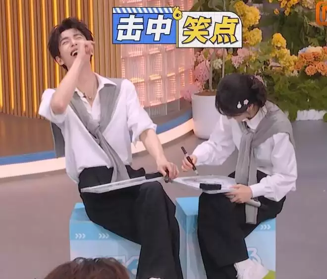 在这个游戏中,张凌赫和田曦薇互相画肖像画,这个场面也是相当甜蜜浪漫的。