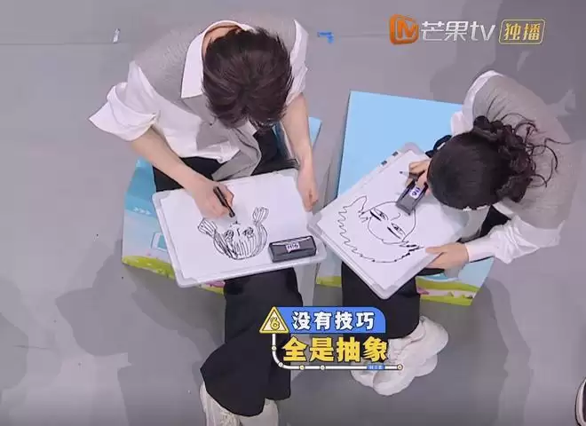 在这期节目中有一个游戏环节,规则是四组搭档在起点处完成互画肖像画,完成挑战就可以到答题位进行答题,题目都是和两人相关的信息题,答案一致则回答正确。