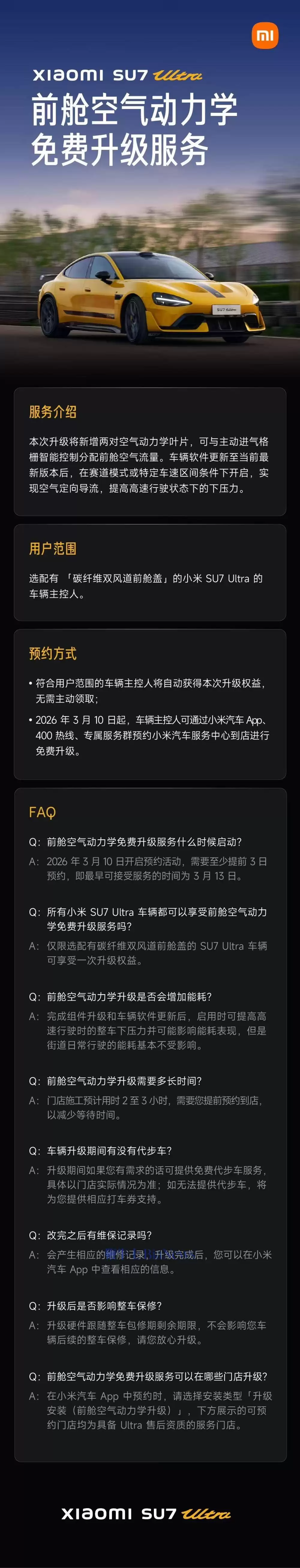小米SU7 Ultra挖孔机盖争议结果:今起预约升级空气动力